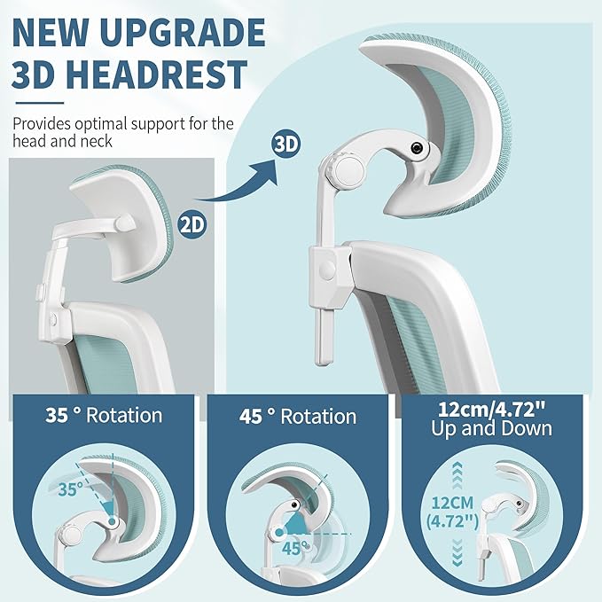 FelixKing Ergonomic Office Chair, Headrest Desk Chair Office Chair with Adjustable Lumbar Support, Home Office Swivel Task Chair with High Back and Armrest, Adjustable Height Gaming Chair(Light Blue)