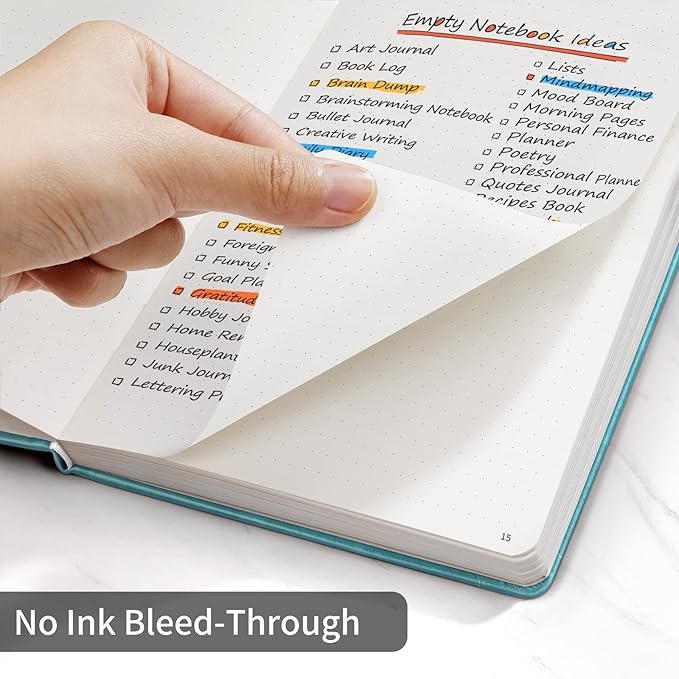 - Multifunctional Cover: The hard cover is made of vegan leather, and designed with a pen loop, an elastic band, two ribbon page markers, an expandable inner pocket.