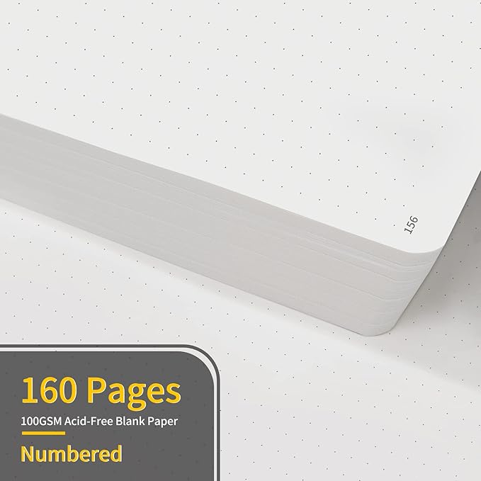 - Multifunctional Cover: The hard cover is made of vegan leather, and designed with a pen loop, an elastic band, two ribbon page markers, an expandable inner pocket.