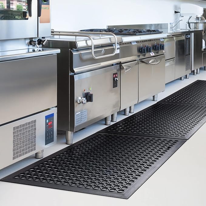 - - The drainage holes in these rubber floor kitchen mats can reduce the amount of slippery liquids and oils left on the floor, Anti Fatigue Design for backside to keep the Drainage Mat Stay in place.