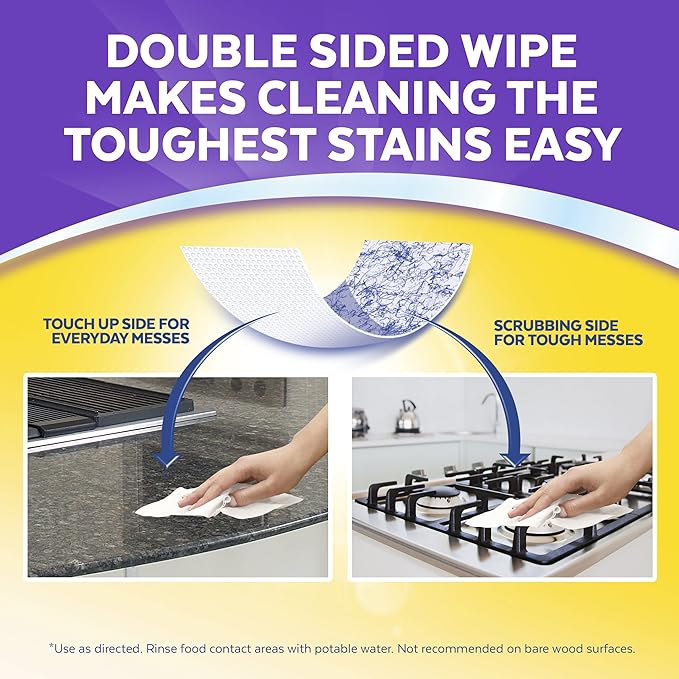 - CLEANS MULTIPLE SURFACES: Germs and messes occur on more than kitchen and bathroom surfaces; tackle tough surfaces including stovetops, countertops and sinks with these multi-surface cleaning wipes