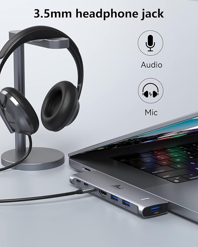 - 【Newly upgraded 7-IN-2 Macbook Pro Multiport Adapter】Note:This Macbook Adapter compatible with the new MacBook with magnetic 3 charging, Not block the Magnetic suction charging port.It equipped with 1*4K30HZ HDMI port, 1* Thunderbolt-enabled USB-C port(support 100W PD charging / 40Gbps data transfer / 5K60HZ display), 3*USBA 3.0+1*USBC 3.0 ,1*MIC/3.5mm Audio; Perfect for MacBook Pro/Air 13''/15''/16''(2016-2022);Not suitable for the Macbook with protective case