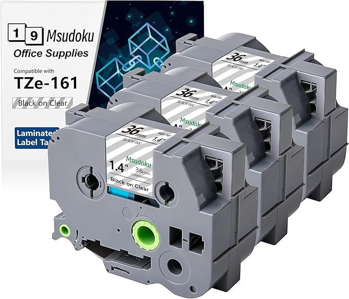 - These compatible for brother label maker tape 36mm TZe-161 TZe161 have strong adhesive and no sticky residue when you remove it. The split back design of ptouch label tape 36mm clear tape is very easy to peel off