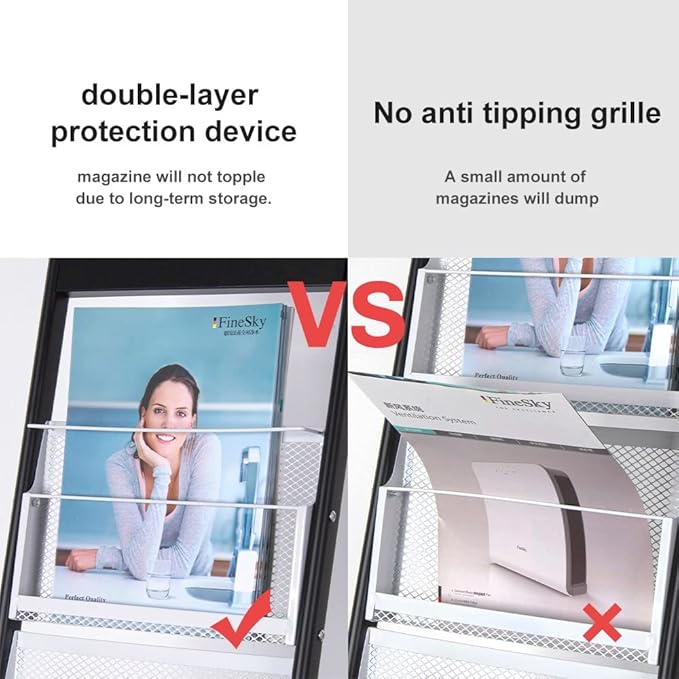 - 【We are different from others】Each layer of grid is equipped with double-layer protection device, and any magazine and exhibition materials will not topple due to long-term storage. They will always be beautiful and more convenient to take magazines