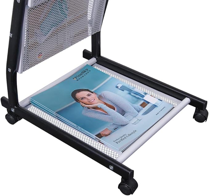 - 【Multifunctional&Easy to move】The brochure display stand can be used in variety of places.hospitals,reception areas, libraries,bank lobbies, event rooms, offices, bars, etc It has 6 tiers with enough space to store a variety of brochures. The magazine rack floor has 4 Vientiane moving wheels, 2 wheels have brakes, which can fix the display stand and avoid sliding
