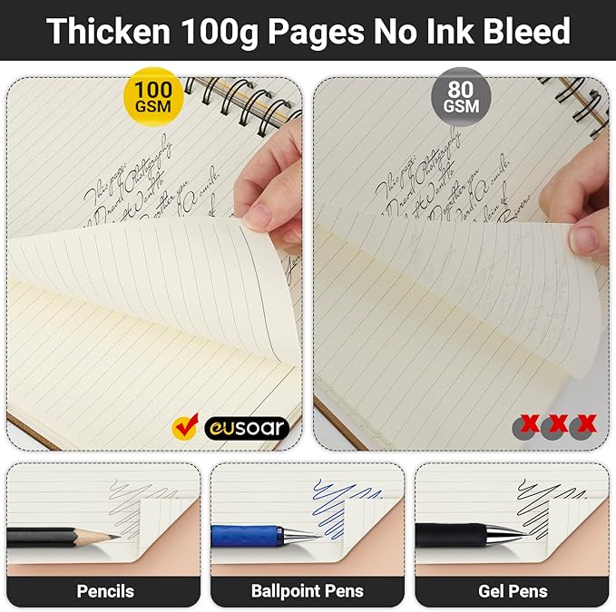 - 【Package Included】1 packs A4(8.5"x11") lined notebooks(each book has 240 pages/120 sheets of paper). And 100gsm thickened inner paper is great for smooth writing with no ink bleed. Also the beige color could greatly protect our eyesight.