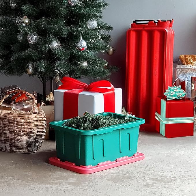 - Versatile Storage Solution: Organize your home, office, or craft space with these heavy-duty 15-gallon totes featuring a stylish green and red finish for maximum space efficiency.