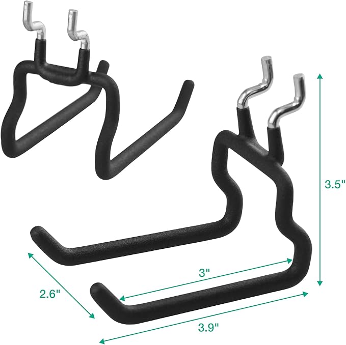 - Easy Mounting Load More: Mountable on 1/4in standard-sized pegboards. No peg lock is needed to fix hooks on the pegboard, hanging heavier items up to 20 lbs. Stand firm and unshakable during use.