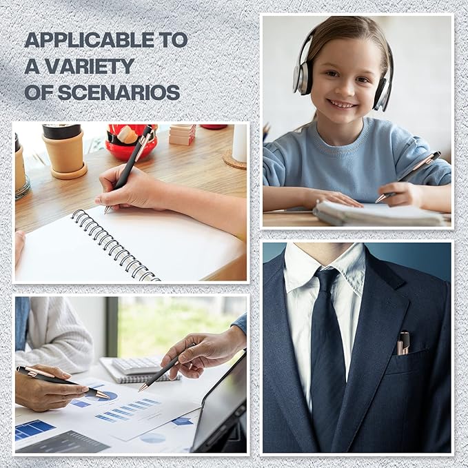 - Quality material: penholder is made of high quality metal material, comfortable and durable, press type design makes you don't have to worry about pen cap drops at any time, out the ink flow, not water, the inside of the pen body spring using elastic spring, ensure every press can have induction, let you both write or touch with ease