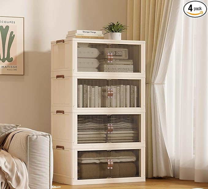 SAILUN 116Gal/464Qt Stackable Storage Bins Folding Collapsible Storage Bins with Lid, Closet Organizers and Storage Box Beige 26" W x 17" D x 56.7" H