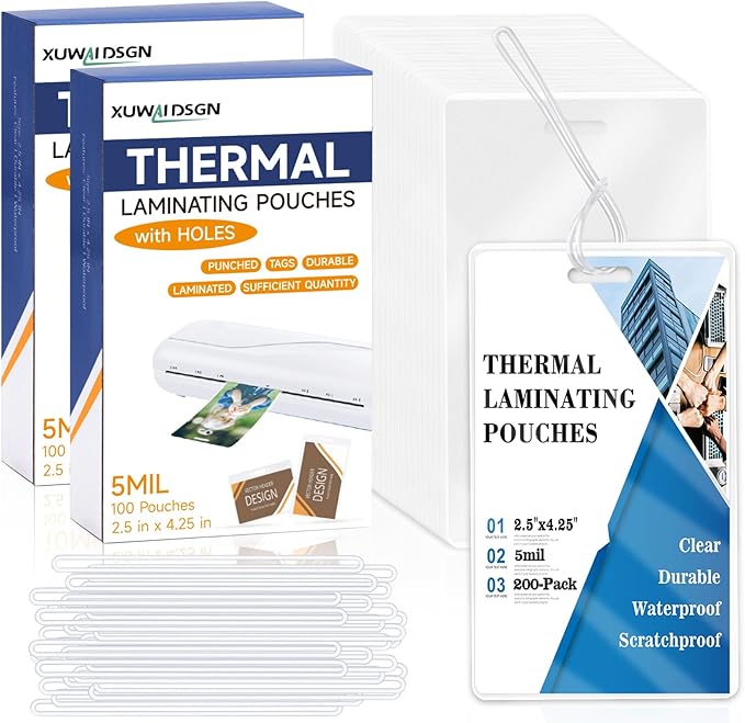 - Multipurpose:Clear laminating pouch suitable for companies, schools, shopping malls, hospitals, governments, etc., It can be used for back to school backpack tag give away,laminate book bag tags for students,make ID cards for employees,factory badges, luggage tags, student ID cards, exhibition cards, etc.