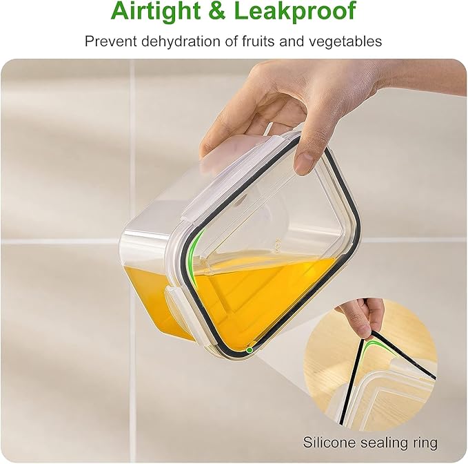 - Keep your fruits fresher longer : The refrigerator organizer bins have a sealed environment which constructed by sealing ring and locking buckles to prevent the loss of water in food.The basket allows water to fall away from the fruit