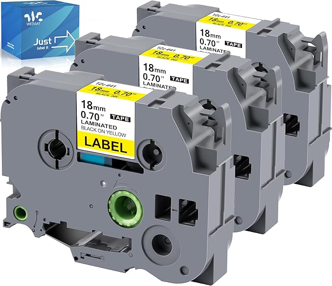Weemay Compatible 3 Pack TZe-641 Replacement for Brother P-Touch Label Tape 18mm 0.7 Black on Yellow 3/4 TZe TZ Tape TZ-641 TZ641 TZe641 for PT-D400AD PT-D610BT PT-D600 PT-D410 Printer, 0.7" x 26.2'