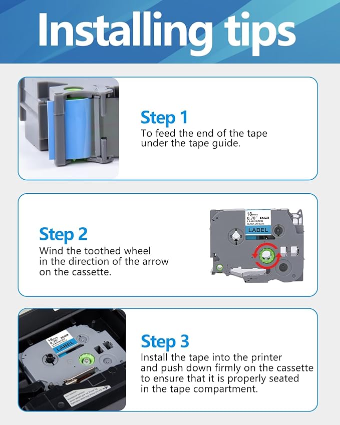 - Versatility: The tze 18mm tape with standard adhesive that is designed to stick to a variety of surfaces, including organizing files and folders, labeling storage containers, making it ideal for labeling items both indoors and outdoors