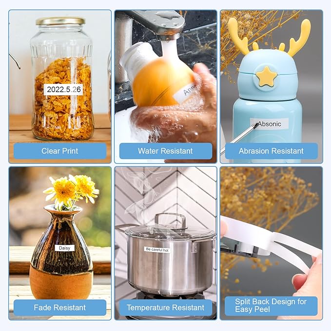 - Applications: Absonic 12mm x 8m Label Tape used for indoor and outdoor. Widely used in offices, homes, supermarkets, laboratories, libraries, warehouses, hotels, and so on