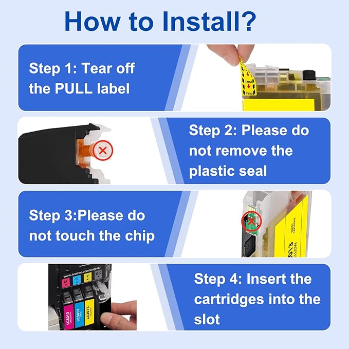 - OUR ADVANTAGES: Our compatible BROTHER LC3013XL ink cartridges are having great value with reasonable cost; excellent ink quality will not clog the printhead, fantastic printing performance with vivid color and clear text; upgraded chip; fade-resistant; easy to install with zero hassle; do not clog printhead; fast recognition; wide application for various occasions.
