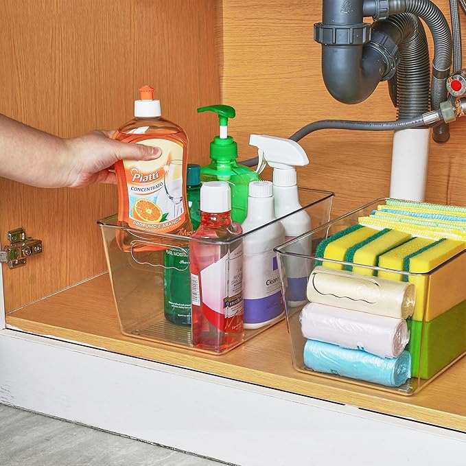 - Built-in Handles ---- The bins have handle grips on the edge making it easy to carry and access contents. You just take the bins out and get the items you want, then put it back in so simple. Organize all of your kitchen essentials to make organizing and everyday living with ease, creating a clean and organized home.