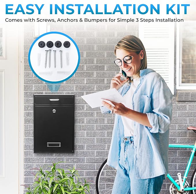 Wall Mounted Locking Vertical Dropbox Mailbox - Safe and Secure (Large) | Made with Galvanized Steel (Dark Gray)