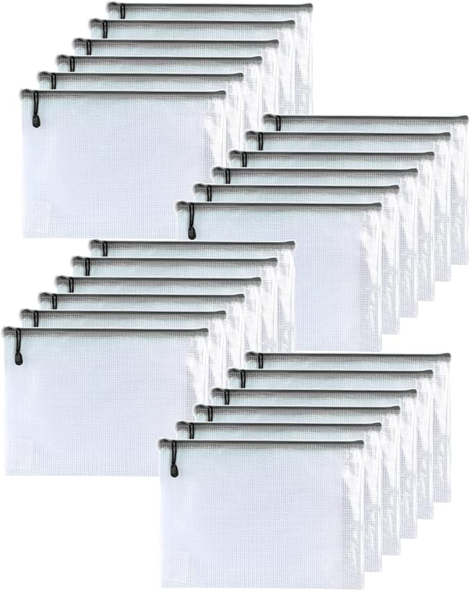 Oaimyy-24PCS-8 x 10" inches-Mesh Zipper Pouch, Plastic Zip File Folders Puzzle Bags for Organizing,for Office Supplies,Travel,Home Storage-Black