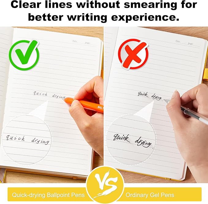 - SMOOTH WRITING & QUICK DRYING: The optimized ballpoint with premium ink delivers skip-free glides all the time. High quality ink dries quickly, so there will be no smearing or bleeding during writing.