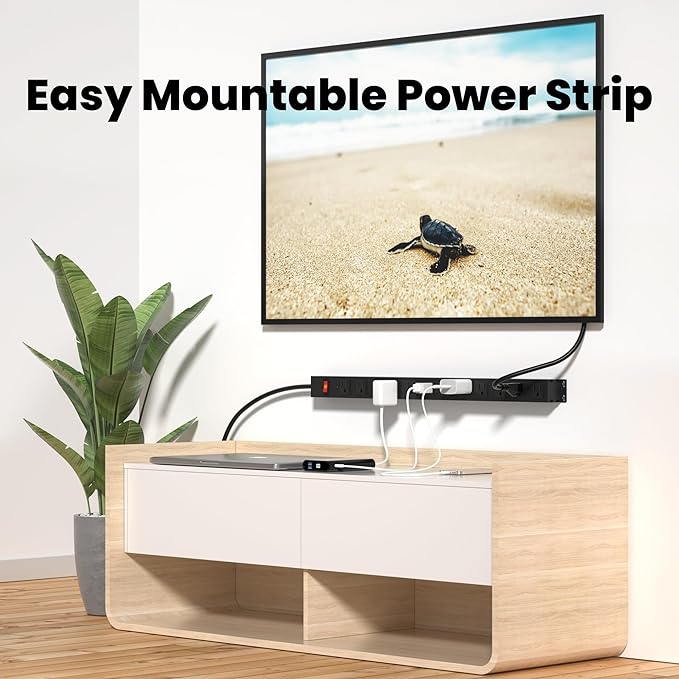 - 【 2100 JOULE SURGE PROTECTION 】The long power strip will automatically cut power to protect your expensive devices when a voltage surge is detected. Making your life safer with electricity.