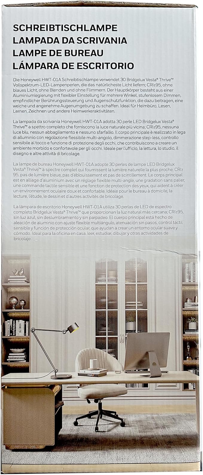 - 【Close to Natural Light - More Comfortable】: Honeywell HWT-01A desk lamp features a full-spectrum light source with a 𝐂𝐑𝐈 ≥𝟗𝟓, surpassing most led table lamp (CRI 80-90). This ensures accurate color reproduction, comparable to the lighting found in art galleries, libraries, and museums. The ABS soft light material on the lamp head creates a soft effect like the morning sun, ensuring a comfortable environment for your eyes.