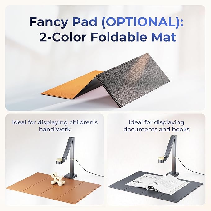 - 3-in-1 Document Camera & Webcam & Scanner: 1.As a document camera, Fancy S Pro can capture excellent real-time images of 2D and 3D objects for easy presentation; 2.Use it as a webcam for live streaming or conference calls; 3.As a document scanner, it is easy to digitize paper documents (note: you need to purchase an additional scanning mat for scanning)