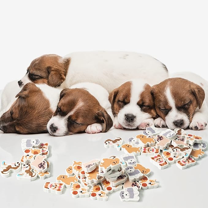 - Double-Sided Printing: The small dog erasers feature double-sided printing, which means that each eraser has a cute dog design on both sides. This adds a fun and playful touch to the product, making it more visually appealing.