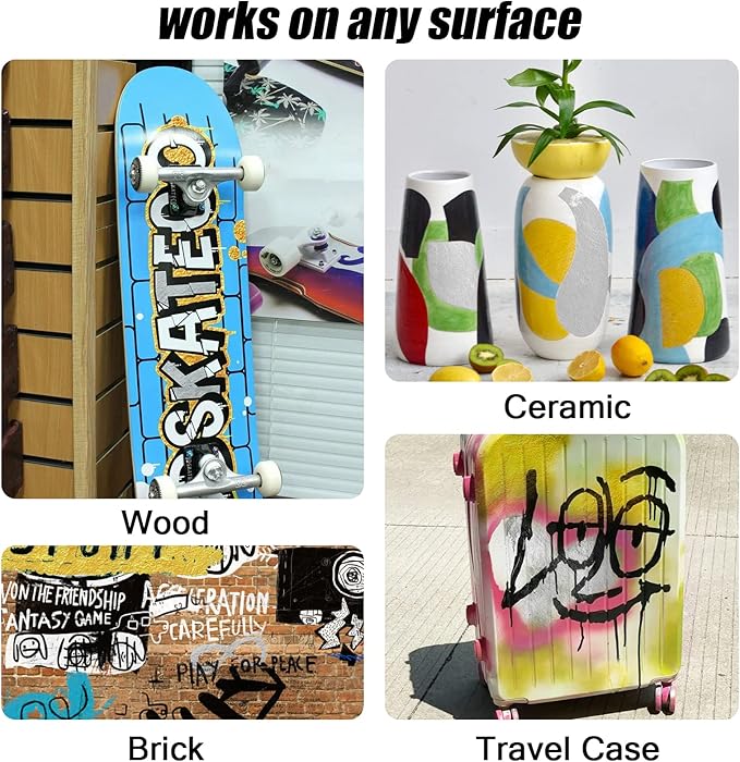 - 【Mark on MULTI-SURFACE】Get perfect artwork on almost any solid surface, leave message and permanent sign. Acrylic paint markers for rock painting, ceramic, wood, plastic, canvas, wood, fabric, canvas, textiles, metal, resin, polymer clay, vinyl, leather and more.