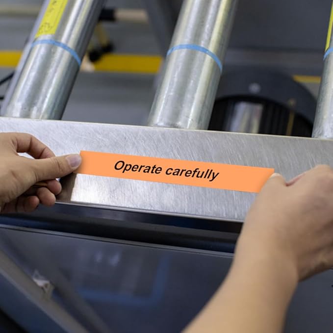 - Indoor and outdoor application, you could use black on orange 18mm label tape to label everything from everyday household items, office supplies, warehouse tools, etc.