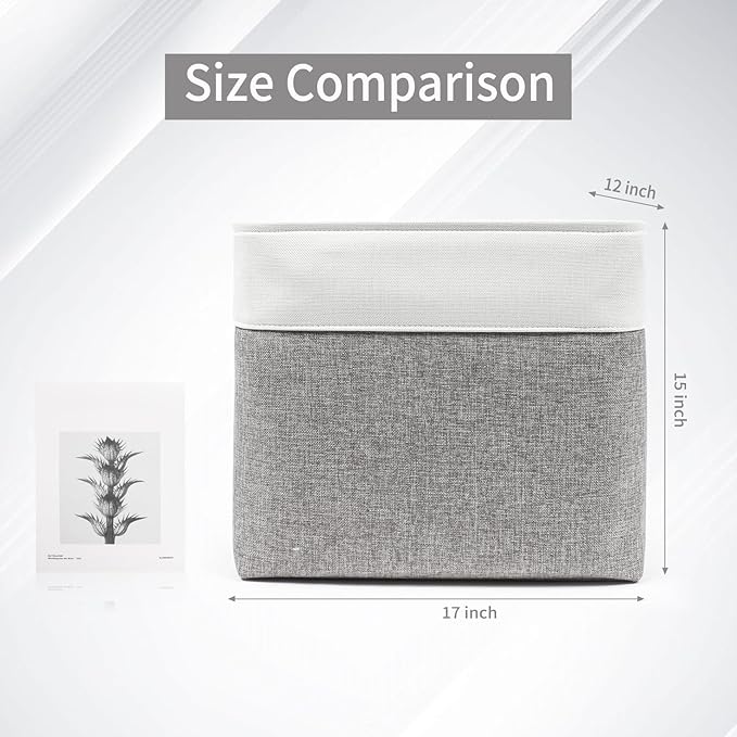 - 【Extra Large Storage Bin】- Set of 3 decorative storage baskets, dimensions (each): 17” (L) x 12” (W) x 15” (H) / (43.2cm x 30.5 cm x 38 cm). Its huge capacity can keep your home nice and tidy. Minimalist design and neutral color can be integrated into any home decorations and styles. Sturdy fabric baskets add a stylish touch to a living room, bedroom, office, kitchen or personal space.