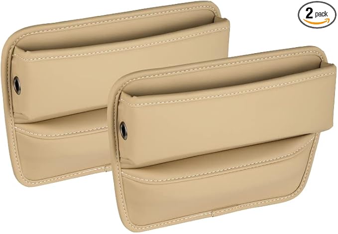 Riloer Car Organizers for Gap Leather Waterproof Car Seat Gap Fillers for Cars, Suvs, Trucks, Front Seat Gap Fillers for Phones, Keys, Cards, Glasses, Beige