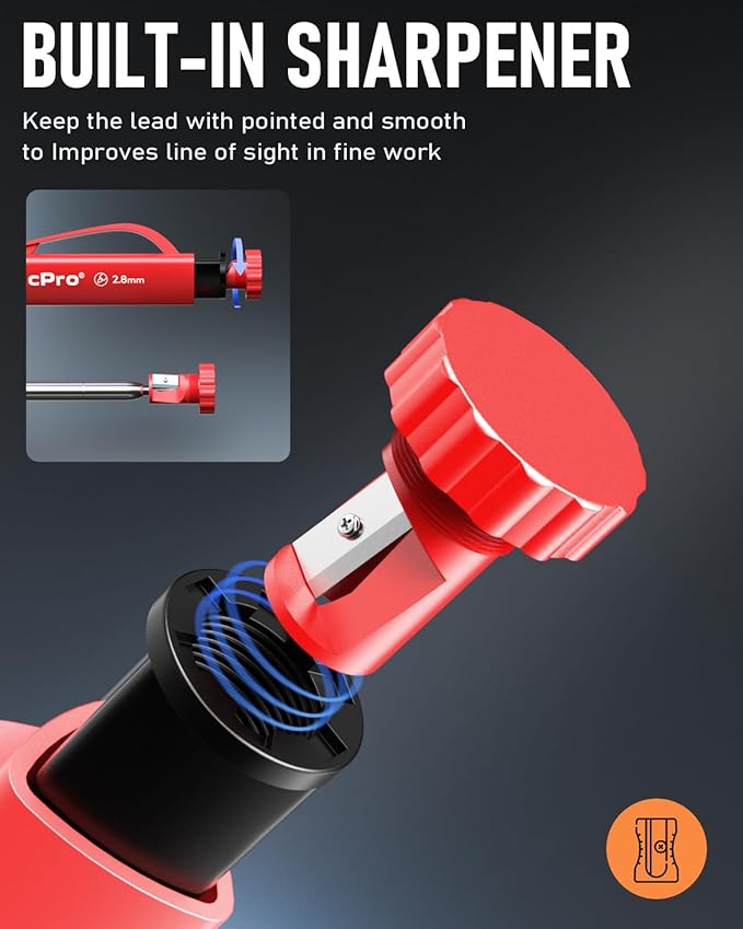 - Stronger Solid 2.8mm Lead: This mechanical carpenter pencils is matched with a 2.8 mm thick lead , which is much thicker and stronger during the drawing process of construction work, it will not break or damage easily