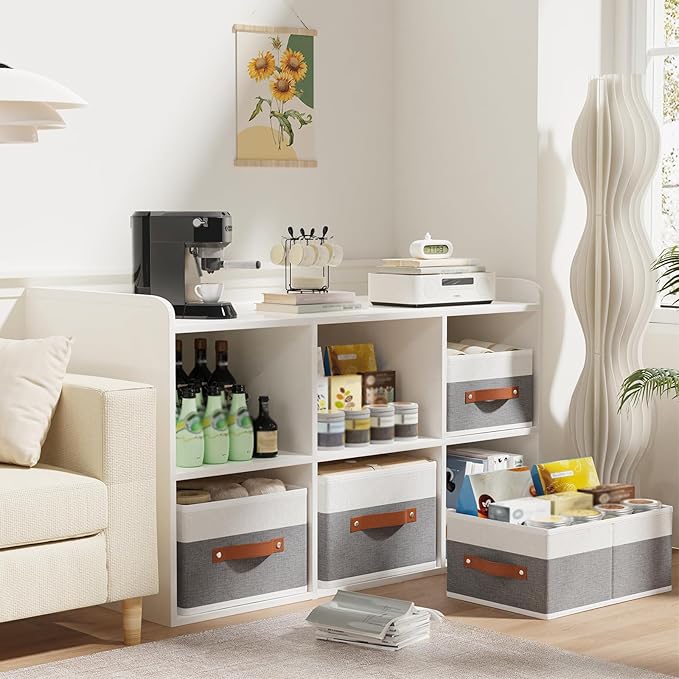Clothing Storage Boxes, Drawer Organizers with Handles, Cube Organizer Bin for Organizing, 13 × 9.1 × 5.5 Inch, White and Grey, 6-Pack