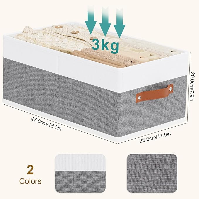 Storage Basket for Shelves, Closet Bin with Handles, 18.5×11×7.9inch Open Foldable Baskets, Fabric Containers Clothes Boxes for Organizing, White and Grey, 6-Pack
