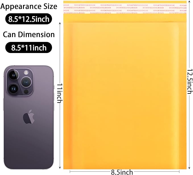 - Kraft Bubble Mailer Size :Outsize size SIZE: 8.5x12 inch, Usable size: 8.5x11 Includes 50 Kraft Bubble Envelopes.
