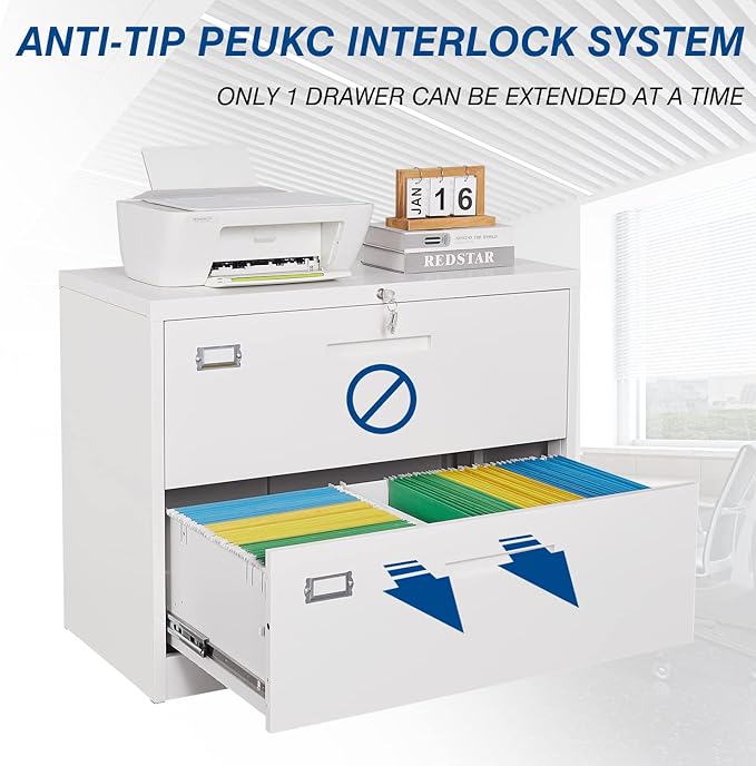 - Security & Anti-tilting- The lock on the top of the metal file cabinet can lock two drawers at the same time, which can effectively protect the privacy of documents. Also the anti-tilting mechanism can prevents tipping when two drawers are opened at the same time for Guaranteeing for your safety. Come with 2 keys.
