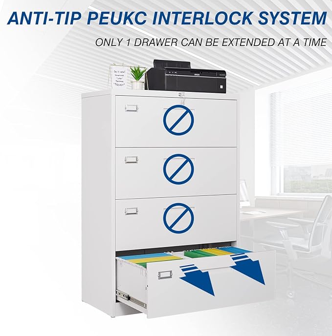 - Security & Anti-tilting- The lock on the top of the metal file cabinet can lock two drawers at the same time, which can effectively protect the privacy of documents. Also the anti-tilting mechanism can prevents tipping when two drawers are opened at the same time for Guaranteeing for your safety. Come with 2 keys.