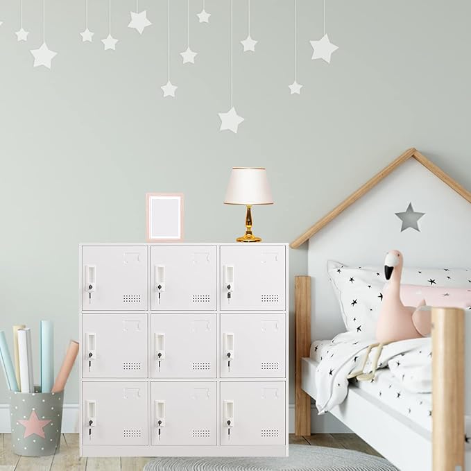 - 【WIDE APPLICATION】 9 Doors storage cabinet fit most of space, for example, the lockers can be used in dormitory/gym, as employees locker; the lockers also can be used in classroom, as kids lockers; and so on. Individual lockers with keys is so practical.