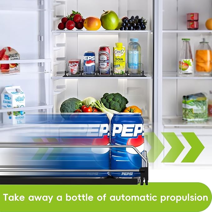 - 【Automatic Drink Propeller】The refrigerator drink organizer pusher can keep the beverage cans always in the front position, saves your space and ensures orderly storage and easy access to your drinks