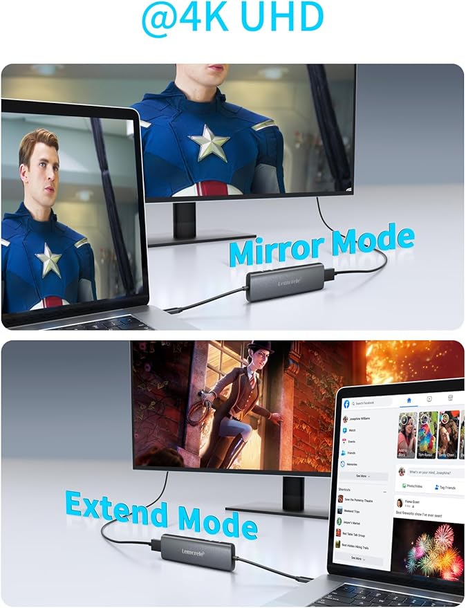 - 【Wide Compatibility】Lemorele usb c hub adapter compatible with all systems and devices with USB C ports that support video output; such as Switch/Xbox/PS4/Chromecast with Google TV, Mac OS/Windows/Chrome OS/Android/iOS/Linux and compatible with MacBook Pro/Air M1, iMac, iPad Pro/Air M1, Dell XPS, Asus Zenbook, Huawei, HP, Lenovo , Microsoft Surface. and various mobile phones, keyboards, mice and other external devices.
