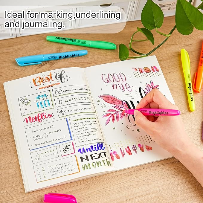 - NO BLEEDING & LONG-LASTING: Premium quick-dry ink drawing on words stay crisp and clear without smearing, leaking, fading or bleeding (let ink dry before highlighting). Each liquid highlighter is equipped with a durable pen cap to prevent ink from drying out for long-lasting use. Shuttle Art highlighters conform to ASTM-D4236.