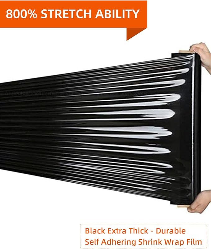 - MULTIPLE PURPOSE USES: Our black stretch film is suitable for both industrial and personal use, making it the perfect choice for packing cargo pallets for transportation or protecting furniture during a move. Its ability to protect items from dirt, tears, and scratches makes it an essential item for any household.