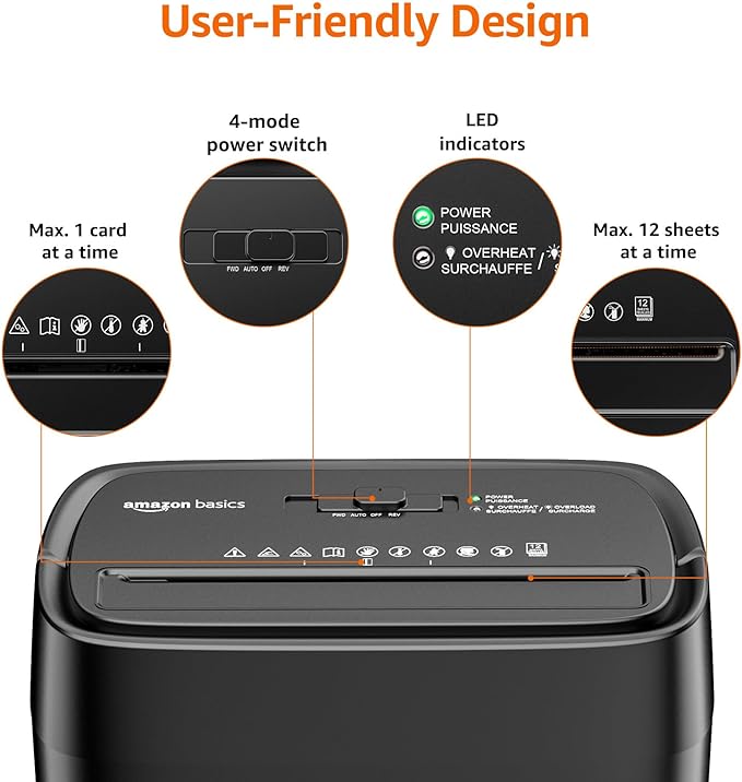 Amazon Basics Cross Cut Paper and Credit Card Shredder, 12 Sheet (New Model), Black