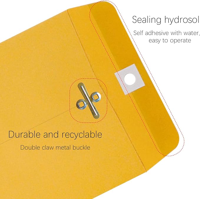 - Two-layer seal: 2-prong metal buckle and reinforced eyelet seal, recyclable, inner rubber seal with water-soluble glue, double-layer seal provides security for your items and documents