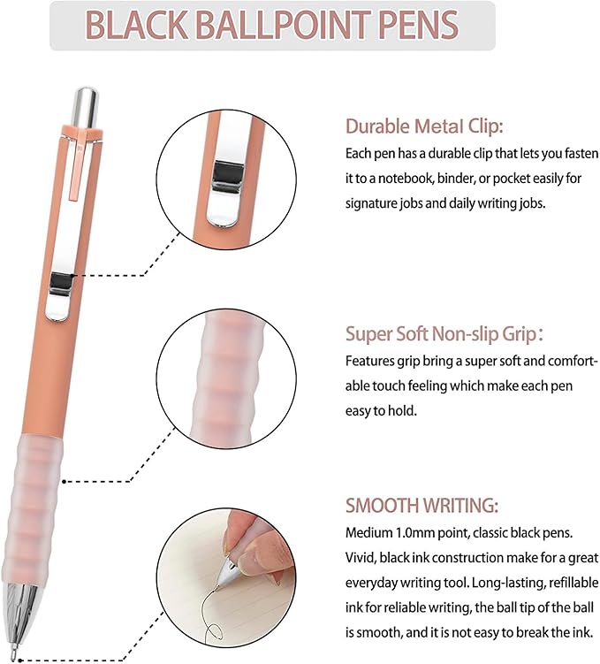 - Super Soft Non-slip Grip: Features grip bring a super soft and comfortable touch feeling which make each ballpoint pen easy to hold
