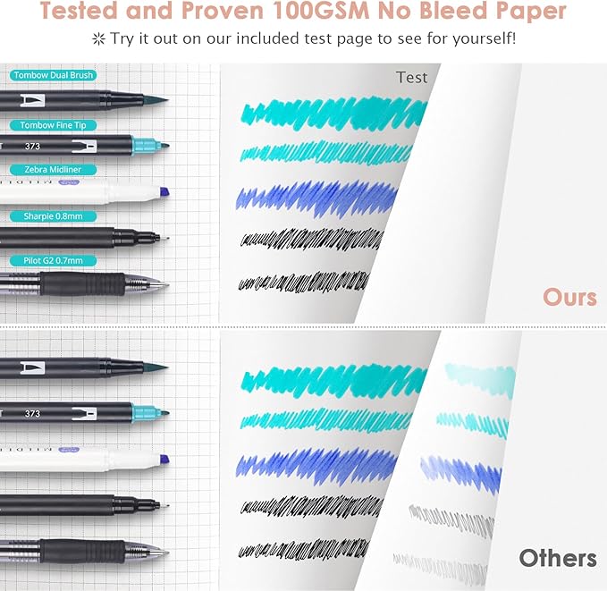 - 【Thick Paper for Writing Without Limits】Large B5 hardcover notebook (7.6"x 10"/193mm x 264mm), total 320 pages, includes 312 numbered pages(equal to 156 sheets). 5 x 5mm graph grid paper(5 squares per inch). Our INNOVATIVE PAPER TECHNOLOGY on 100GSM thick paper ensures a perfect canvas for your ideas - no bleed, no ghosting, as confirmed by tests with various pens.