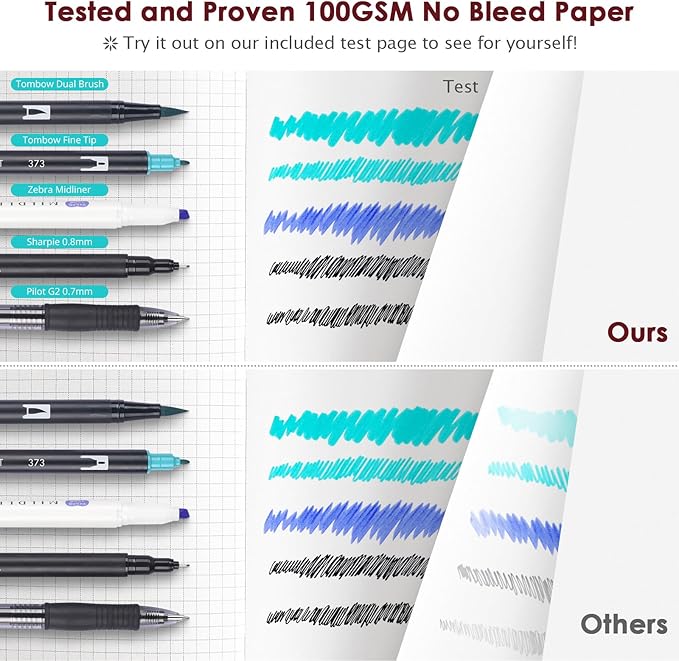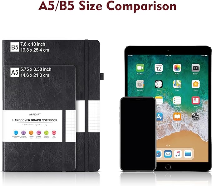 - 【Thick Paper for Writing Without Limits】Large B5 hardcover notebook (7.6"x 10"/193mm x 264mm), total 320 pages, includes 312 numbered pages(equal to 156 sheets). 5 x 5mm graph grid paper(5 squares per inch). Our INNOVATIVE PAPER TECHNOLOGY on 100GSM thick paper ensures a perfect canvas for your ideas - no bleed, no ghosting, as confirmed by tests with various pens.