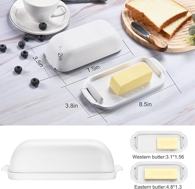 - 【Nice Gift Choose】The ideal size of the butter dish is perfect for both EAST and WEST coast Butter. Simple and modern design fits most home countertop styles and different occasions, such as Christmas, Thanksgiving Day or other memorable days