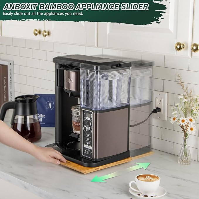 - ENHANCING YOUR KITCHEN LIFE: With the ANBOXIT Sliding Tray, you no longer have to endure the hassle of moving appliances back and forth. Whether you're retrieving your coffee maker from under the cabinet for that first cup of morning joe, pulling out the air fryer tucked away in the corner for a delicious lunch, or clearing up extra space to prepare a grand dinner for the evening, ANBOXIT is there to swiftly and effortlessly assist you in moving your appliances.